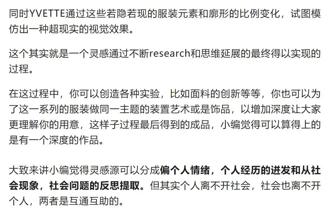 其实是指有一定的思考,从research开始一直到成衣完成的整个过程中的思考。